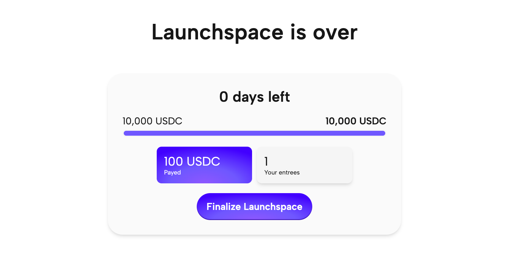 Once you've successfully raised the full amount for the launch, and three days have passed since Launchspace was initiated, you can finalize the token launch and start trading your token. This action can be taken immediately or at a later time, based on your strategy.