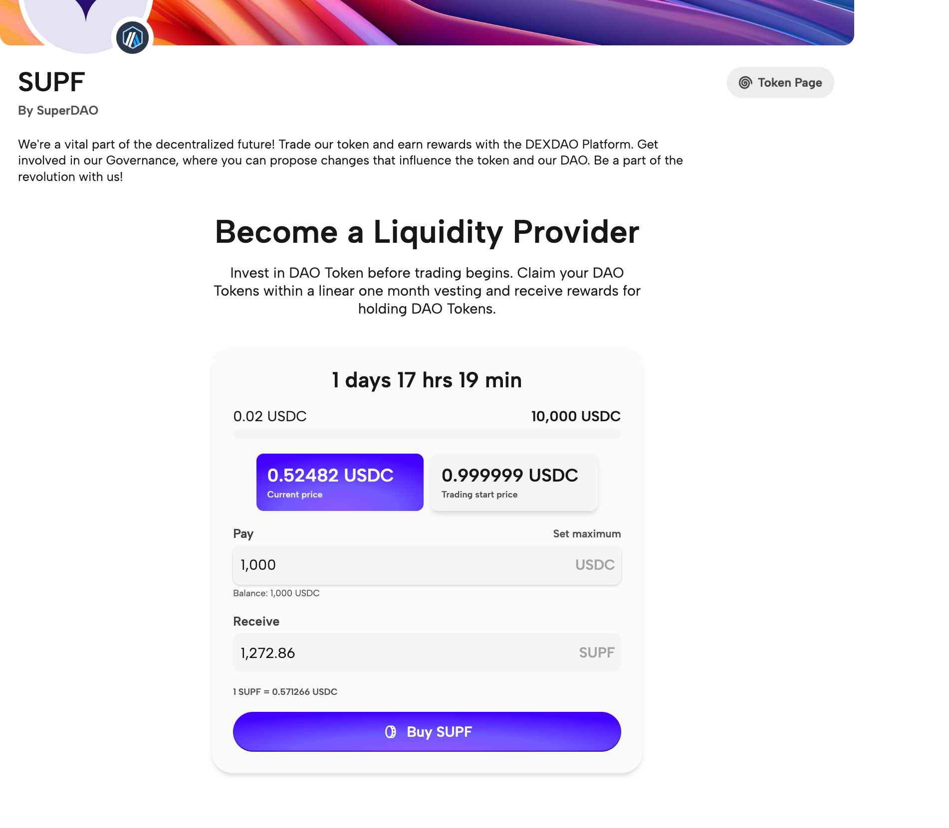 Tokens purchased on Launchspace will be unfrozen for 30 days in a linear vesting process. After unfreezing, tokens are available for trading on DEXDAO.