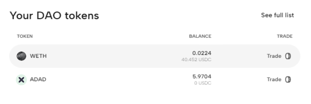 After that you will be able to access the My Account page and trade on DEXDAO.